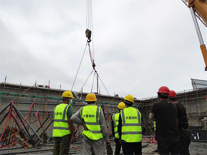 6.为确保.渭南加油站球形网架安装顺利,应有详细的渭南施工组织设计。网架安装必须保证结构的稳定性和不产生的附加变形。